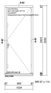 Kozijn wordt geleverd en afgehangen aan veiligheidsscharnieren met glij lagers en voorzien van een 3-puntsluiting met sleutelbediening en het volgende veiligheidsbeslag: